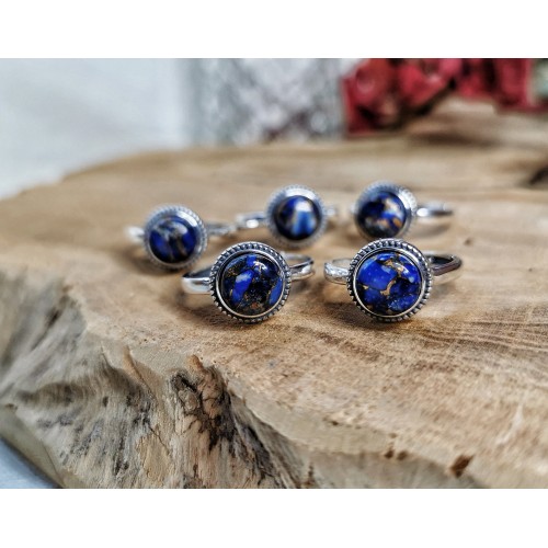 Motif rond ciselé, pierre de 8mm en cabochon rond dépassant de 3mm.