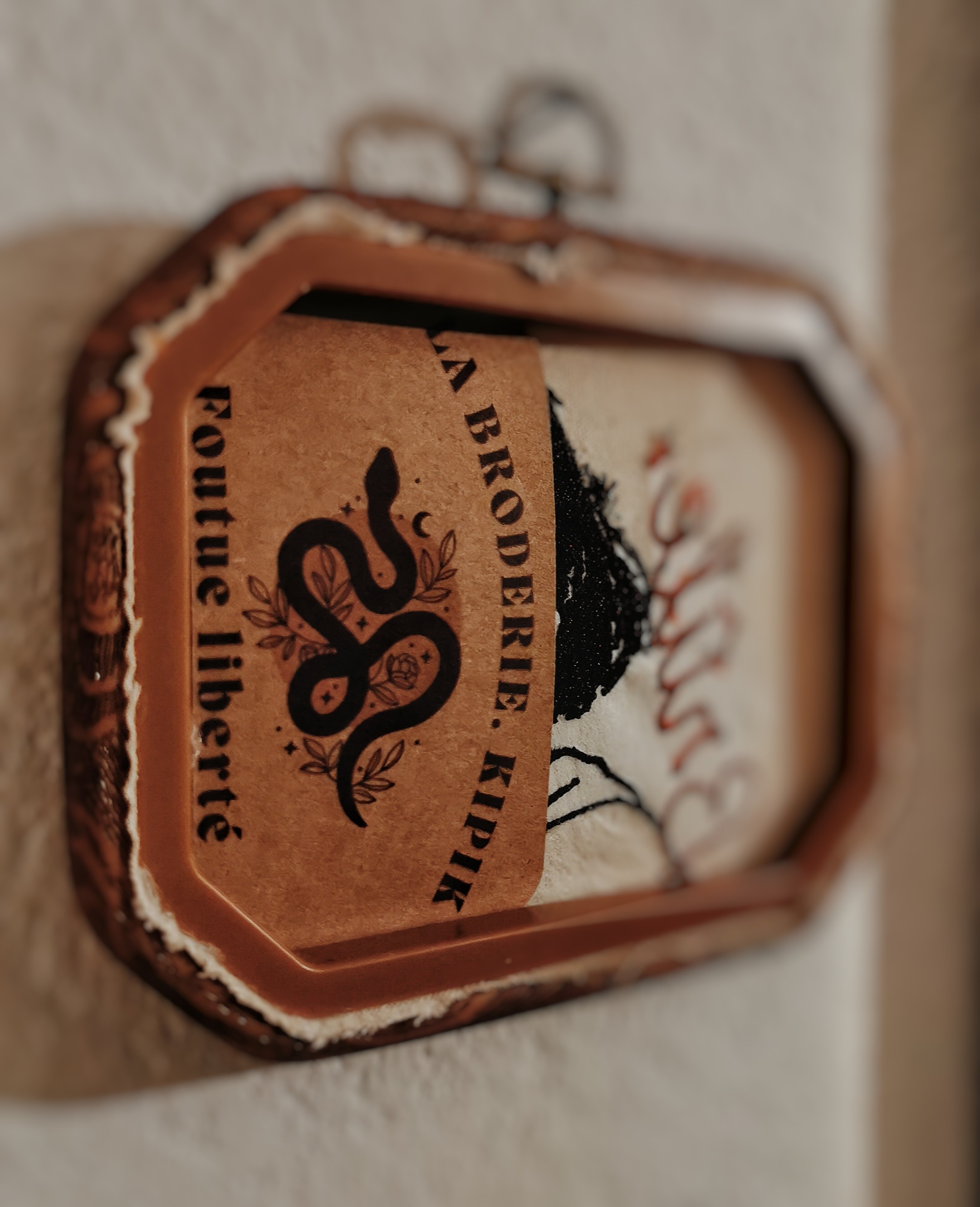 Révoltée la broderie “Mamzelle Nora” continue aussi la série Foutue Liberté, une collection dédiée aux femmes qui s’appartiennent. Novembre 2025.